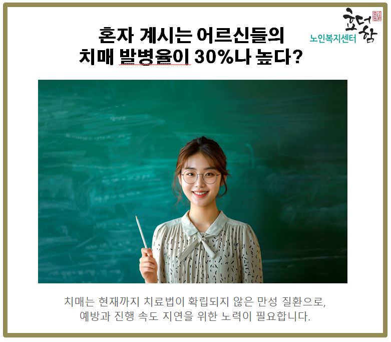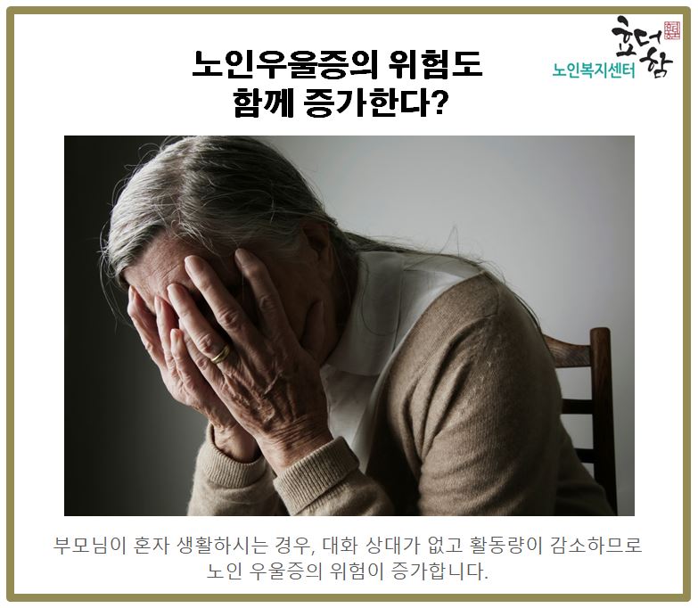 ºÎ¸ð´ÔÀÌ È¥ÀÚ »ýȰÇϽô °æ¿ì, ´ëÈ »ó´ë°¡ ¾ø°í Ȱµ¿·®ÀÌ °¨¼ÒÇϹǷΠ³ëÀοì¿ïÁõÀÇ À§ÇèÀÌ Áõ°¡ÇÕ´Ï´Ù.